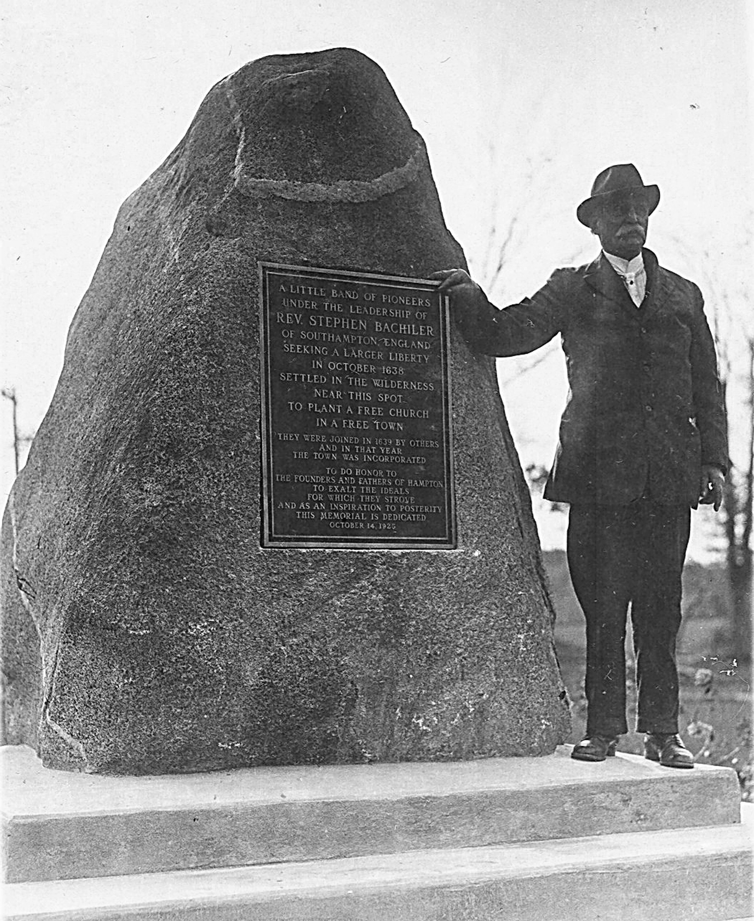 Some felt that now was the time to gather up the past before it slipped away forever. To that end, a group of civic-minded citizens formed the Meeting House Green Memorial and Historical Association, with a mission to preserve the town’s history. They built Memorial Park on the Meeting House Green and dedicated it on the occasion of the town’s 287th birthday, October 14, 1925. Attended by representatives of Hampton’s nine ‘daughter’ towns, the event was capped by the unveiling of a 12-ton granite monument honoring Hampton’s Puritan founders.