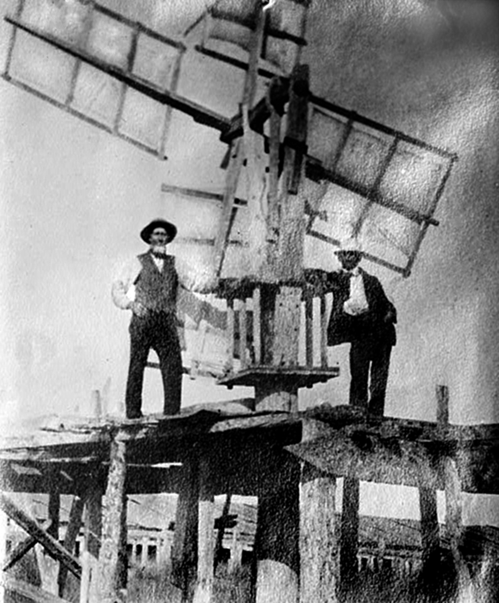 (Above: Mid-19th century view of a Cape Cod saltworks wind-driven pump, which supplied sea water to the evaporation vats. The Hampton windpump owned by David Nudd would have been similar. Library of Congress.)