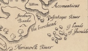 The New England towns that dotted Captain John Smith’s 1616 map (above) didn’t really exist, but a sixteen-year-old English prince named Charles had taken the liberty of replacing Smith’s indigenous place names with English ones, most of which did not survive the era of Puritan migration. As to the future site of Hampton, located on the mainland just south of “Smiths Iles,” neither the young prince nor Smith had paid much attention—its place on the map was nameless and nearly hidden by Smith’s outsized portrait.