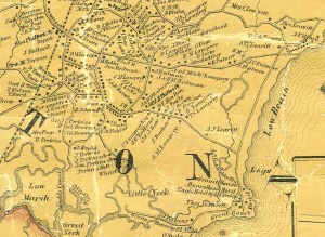 Colonel Joseph Blanchard of Dunstable, New Hampshire served in the New Hampshire militia and fought in the French and Indian War. Assisted by Samuel Langdon, a regimental chaplain from Portsmouth, New Hampshire, he surveyed “An accurate map of His Majesty’s province of New-Hampshire in New England…which exhibits the theatre of this war in that part of the world.” Hampton, Great Boar’s Head, and “Hampton R. & Marshes” appear on this map, published three years after Blanchard’s death in 1758.